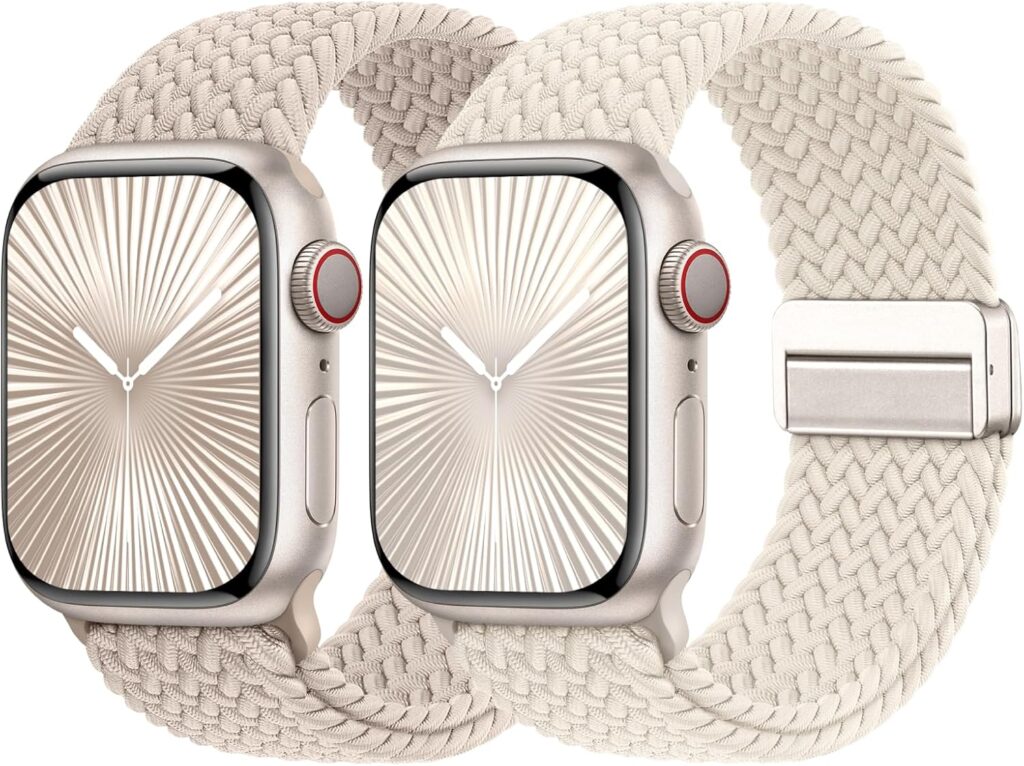 This item: Braided Stretchy Bands with Magnetic Clasp Compatible for Apple Watch Band 38mm 40mm 41mm 42mm 44mm 45mm 46mm 49mm Women Men, Nylon Sport Solo Loop for iWatch Series 11 10 9 8 7 6 5 4 3 Ultra 3 2 1 SE